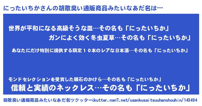 | 意味不明あだ名 | 『住所不定無職にったいちか(39歳)』 |