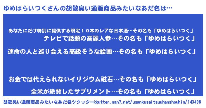 | 意味不明あだ名 | 『ゆめはらいつくフォーエバー』 |