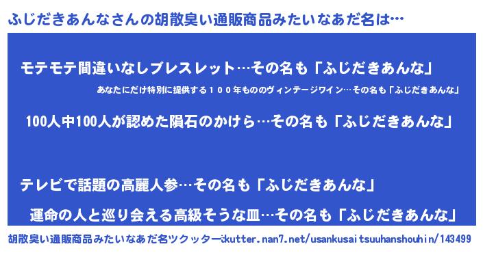 | 男性向けラノベタイトル風あだ名 | 『フジダキアンナスレイヤー』 |