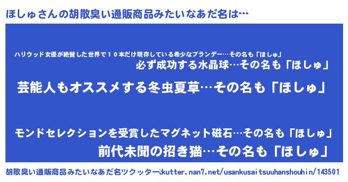 | ヒーロー風カッコイイあだ名 | 『究極戦士ホシュ』『仮面ホシダー』 |