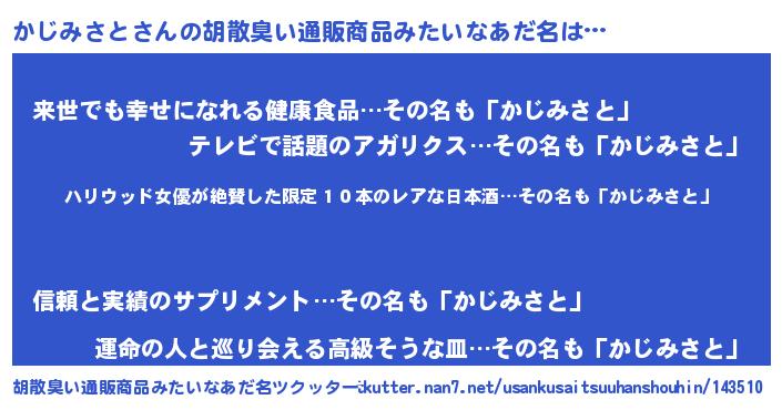 | 意味不明あだ名 | 『住所不定無職かじみさと(47歳)』 |
