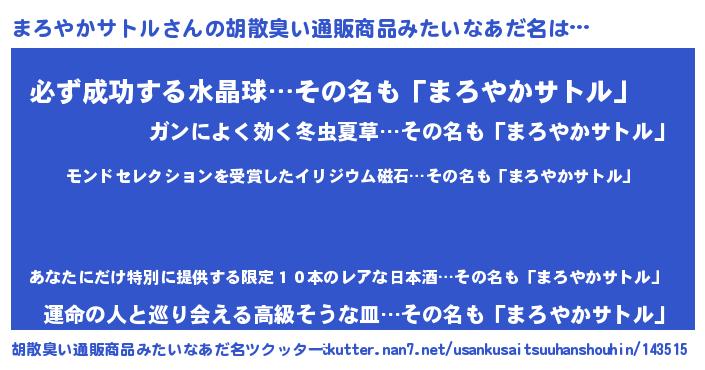 | 男性向けラノベタイトル風あだ名 | 『うちのまろやかサトルが世界を掌握している!』 |