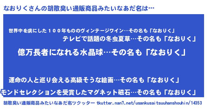 | ヘコむあだ名 | 『なおふぇ~』『豆乳』『なおを』 |