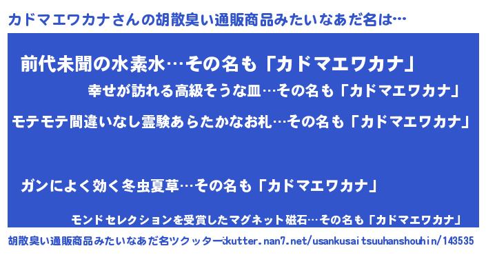 | ヘコむあだ名 | 『カドっふぃ~』『カドマエワカナ(苦笑)』 |