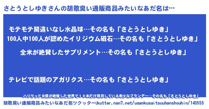 | 欧米人風あだ名 | 『ウサインさとうとしゆき』 |