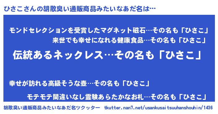 | 意味不明あだ名 | 『とにかく怪しいひさこ』 |