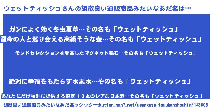 | 男性向けラノベタイトル風あだ名 | 『ノーゲーム・ノーウェットティッシュ』 |