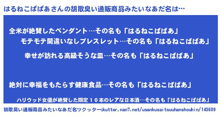 | 欧米人風あだ名 | 『はるねこばばあクリステル』 |