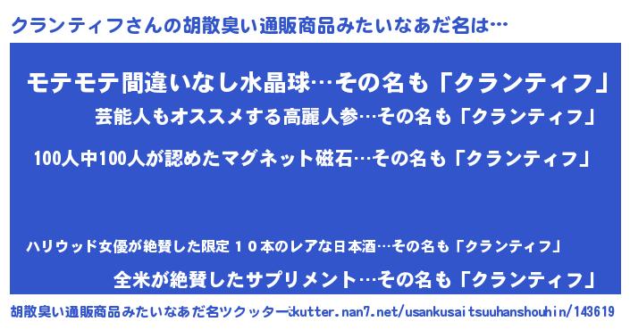 | ヒーロー風カッコイイあだ名 | 『正義の使者クランティフ』 |