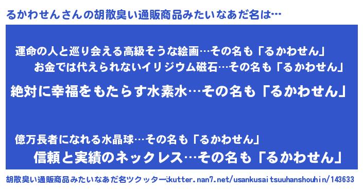 るかわせんさんの胡散臭い通販商品みたいなあだ名をツクッター!