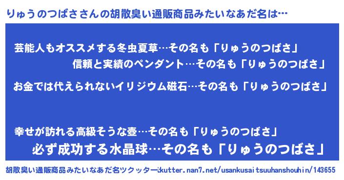 りゅうのつばささんの胡散臭い通販商品みたいなあだ名をツクッター!