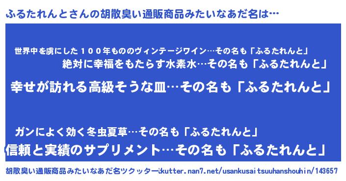 | 男性向けラノベタイトル風あだ名 | 『やはりふるたれんとの青春ラブコメはまちがっている 』 |