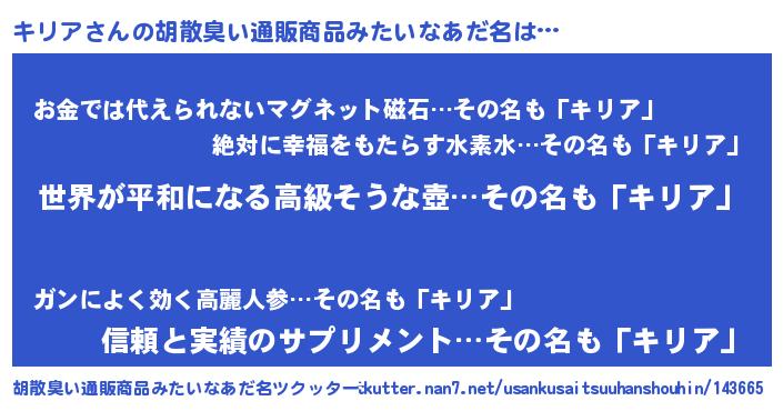 | ヘコむあだ名 | 『なまこ酢』『キリっぺ』『キリにー』 |