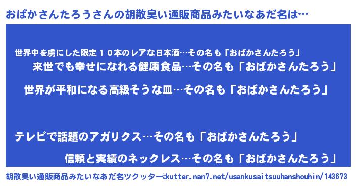 | 男性向けラノベタイトル風あだ名 | 『やはりおばかさんたろうの青春ラブコメはまちがっている 』 |