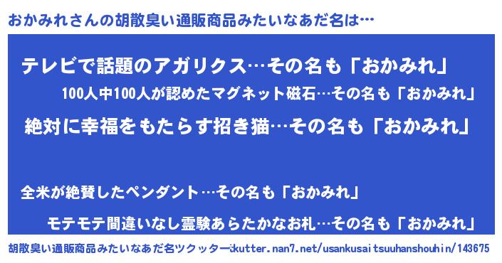 | 意味不明あだ名 | 『永久保存おかみれ』『自称おかみれ』 |