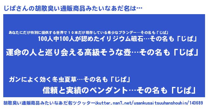 | 意味不明あだ名 | 『じぱフォーエバー』『自称じぱ』 |
