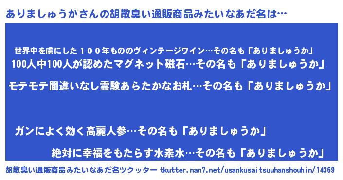 | ヘコむあだ名 | 『ありっふぃ~』『ありましゅうか(小並感)』 |