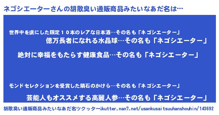| 意味不明あだ名 | 『永久保存ネゴシエーター』 |