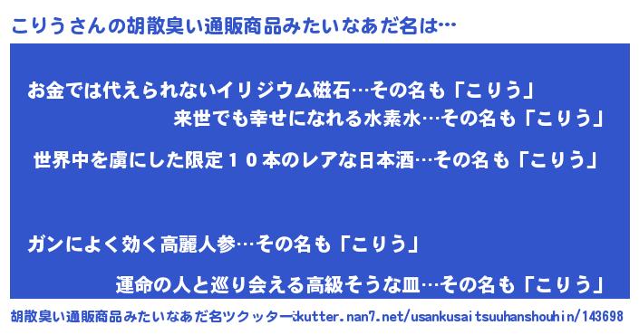 | 意味不明あだ名 | 『住所不定無職こりう(65歳)』 |