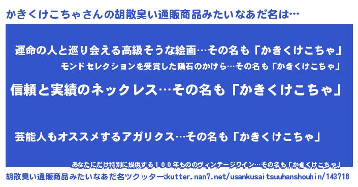 | 料理風あだ名 | 『かきくけこちゃの豆乳スープ』 |