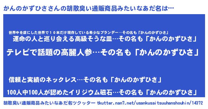 | 意味不明あだ名 | 『自称かんのかずひさ』 |