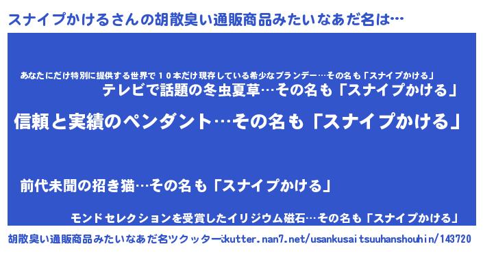 | ヘコむあだ名 | 『スナっちょ』『スナイプかける(笑)』 |