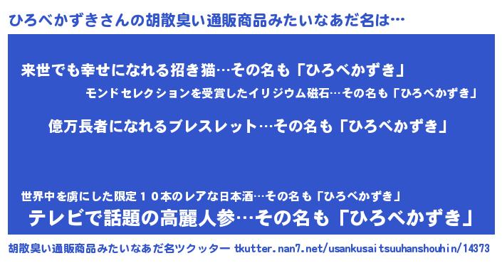 | ヘコむあだ名 | 『ひろにー』『ひろべかずき(笑)』 |