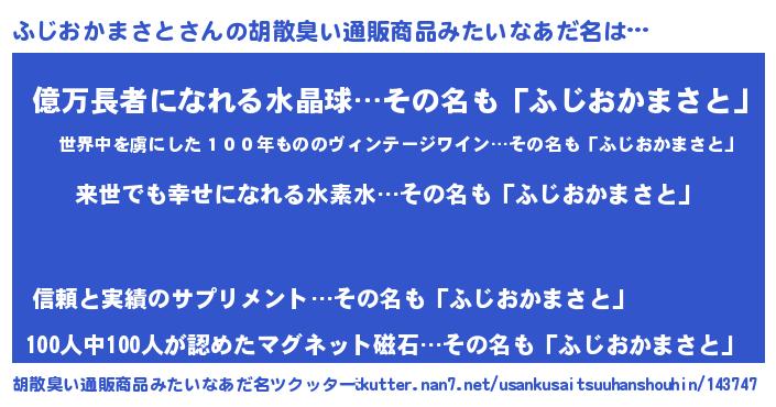 | 意味不明あだ名 | 『永久保存ふじおかまさと』 |