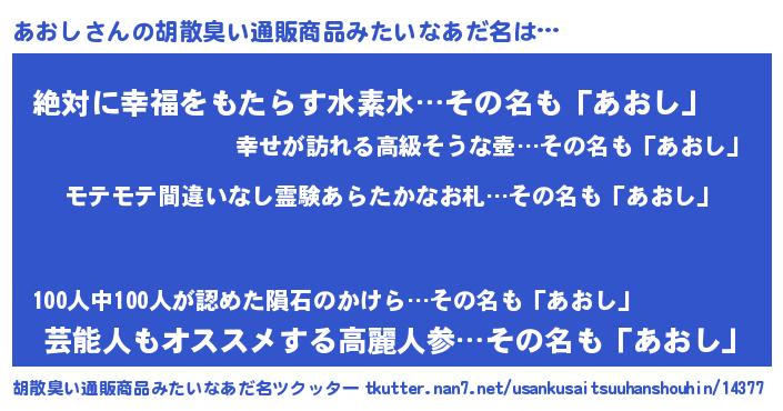 | ヘコむあだ名 | 『あおもー』『あおし(震え声)』 |