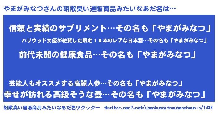 | ヘコむあだ名 | 『やまがみなつ(笑)』『やまを』 |