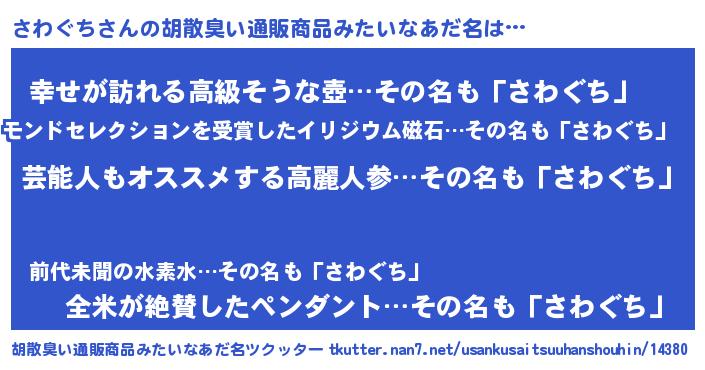 | 意味不明あだ名 | 『自称さわぐち』『さわぐちフォーエバー』 |