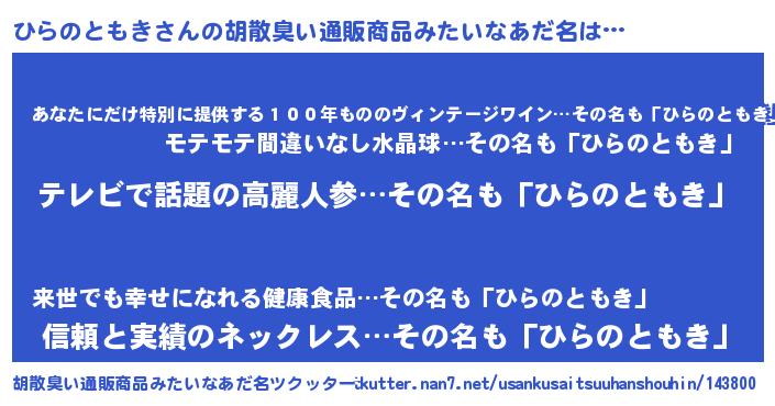 | 意味不明あだ名 | 『自称ひらのともき』 |