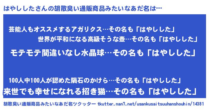 | ヘコむあだ名 | 『はやにゅー』『はやしした(震え声)』 |