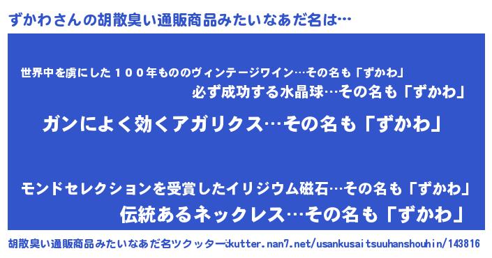 | 女子向けラノベタイトル風あだ名 | 『ずかわなんてお断りですっ。』 |