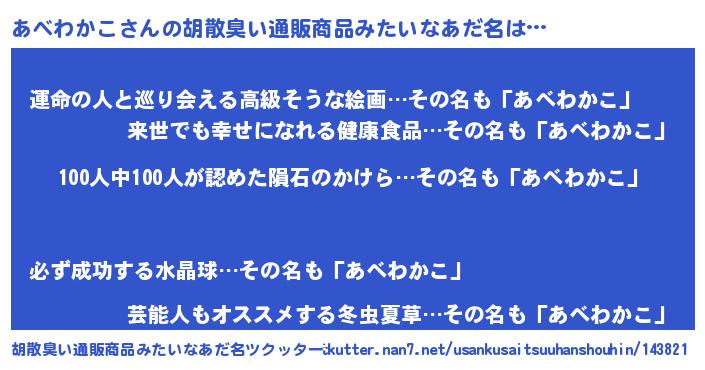 | ヒーロー風カッコイイあだ名 | 『正義の使者あべわかこ』 |