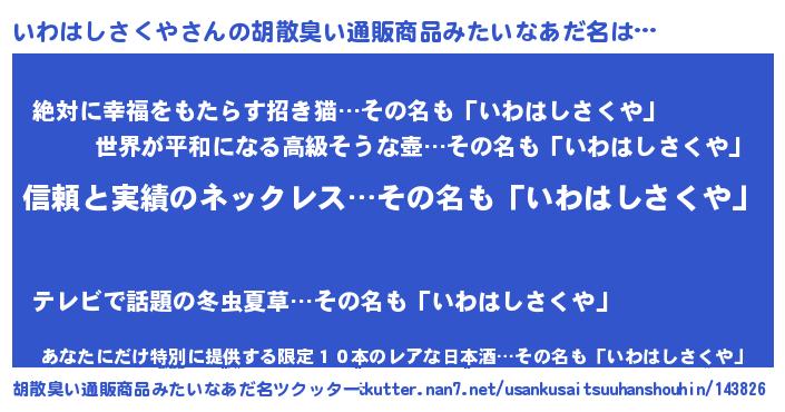 | ヘコむあだ名 | 『いわっ子』『いわはしさくや(笑)』 |