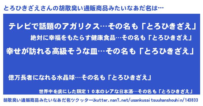 | 男性向けラノベタイトル風あだ名 | 『やはりとろひきざえの青春ラブコメはまちがっている 』 |