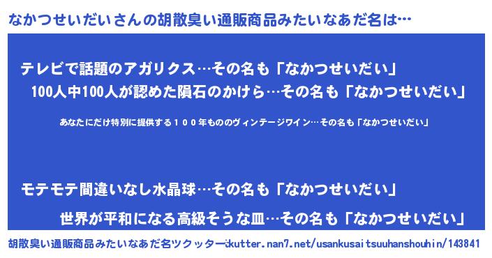なかつせいだいさんの胡散臭い通販商品みたいなあだ名をツクッター!