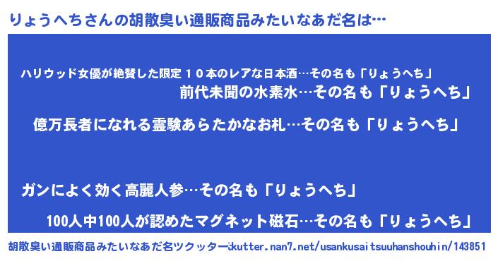 | ヘコむあだ名 | 『りょっふぃ~』『りょうへち(笑)』 |
