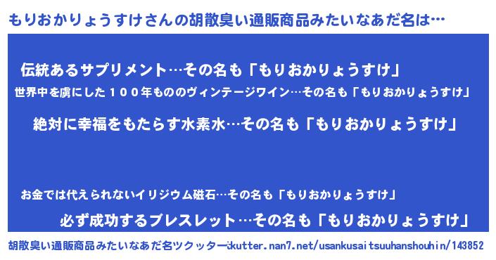 | ヘコむあだ名 | 『もりおかりょうすけ(苦笑)』『もり太郎』 |