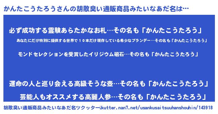 | ヒーロー風カッコイイあだ名 | 『慈愛の使者かんたこうたろう』 |