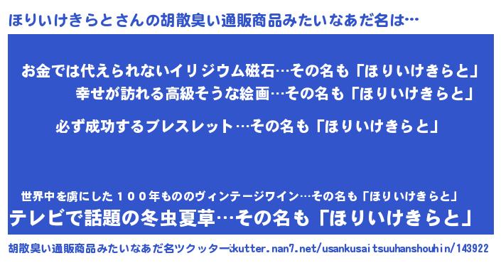 | 欧米人風あだ名 | 『マイケルほりいけきらと』 |