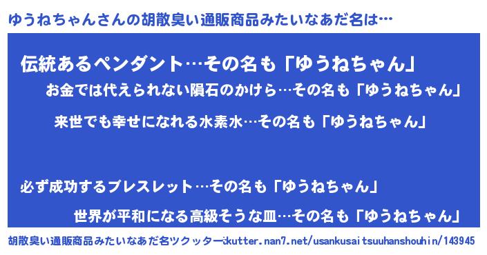 | 意味不明あだ名 | 『永久保存ゆうねちゃん』 |