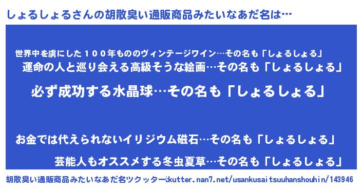 | 男性向けラノベタイトル風あだ名 | 『しょるしょるの憂鬱』 |