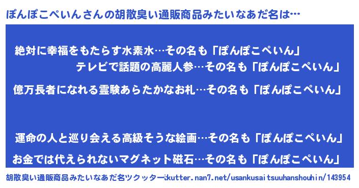 | ヘコむあだ名 | 『ぽんっふぃ~』『ぽんぽこぺいん(笑)』 |