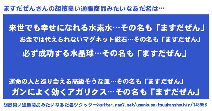| ヘコむあだ名 | 『ますにゅー』『ますだぜん(遠い目)』 |
