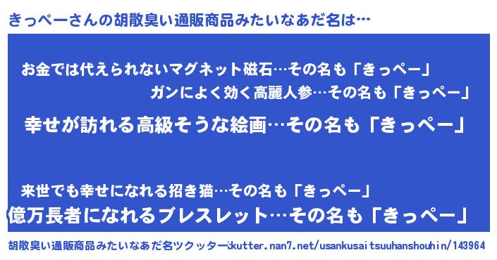 | ヒーロー風カッコイイあだ名 | 『ウルトラきっぺーマン』『ネオキッペー』 |