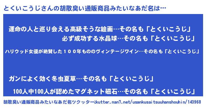 | 意味不明あだ名 | 『住所不定無職とくいこうじ(7歳)』 |