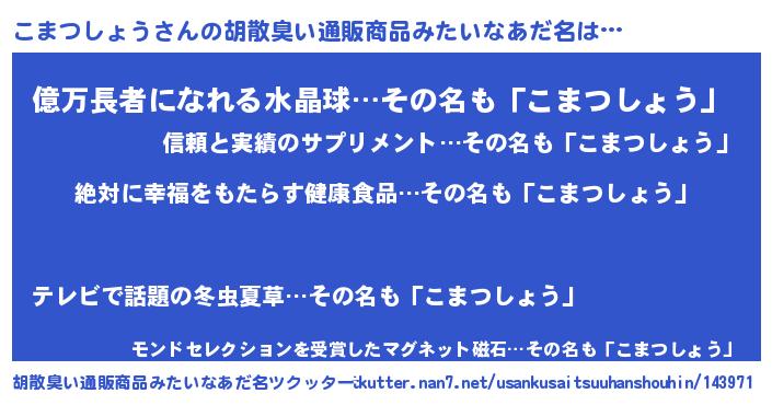 | 意味不明あだ名 | 『永久保存こまつしょう』 |