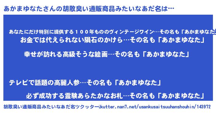 | 意味不明あだ名 | 『あかまゆなたフォーエバー』 |